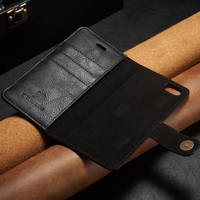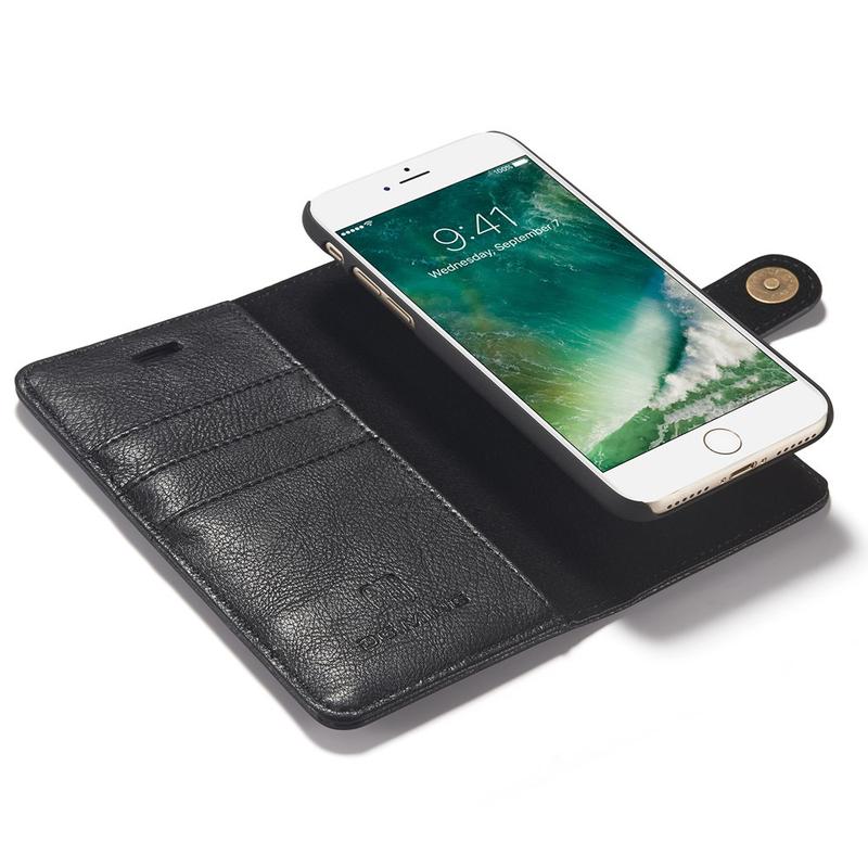 DG.Ming 2-in-1 Schutzhülle für iPhone 7, iPhone 8, iPhone SE (2020), iPhone SE (2022) ist eine ausgezeichnete Kombination aus einer flip-tasche und einem abnehmbaren magnetischen Cover. Diese Hülle ist multifunktional, mit Kartenfächern und einer Tasche für Geld, hält alles zusammen. Metall-Snap-on-Verschluss sorgt für zusätzliche Sicherheit und macht es möglich, die Tasche zum Stativ für die freihändige Verwendung zu falten. Sein ausgezeichnetes Design, mit Spaltleder beschichtet, fühlt sich gut in der Hand.