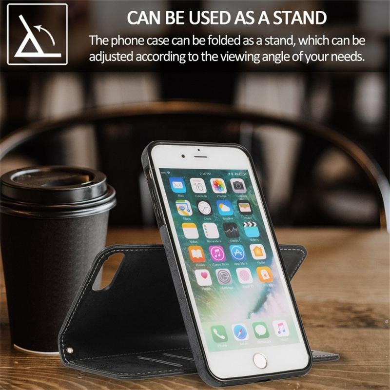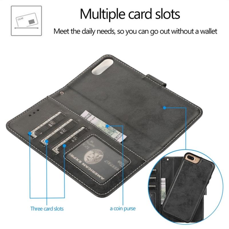 Verleihen Sie Ihrem iPhone 7 Plus, iPhone 8 Plus mit dieser Vintage 2-in-1-Geldbörsenhülle einen klassischeren und praktischeren Look. Sie wurde für den täglichen Gebrauch entwickelt und kombiniert eine abnehmbare TPU-Innenhülle mit einer Geldbörsenhülle im Retro-Stil, sodass Sie beide Teile je nach Bedarf zusammen oder getrennt verwenden können.