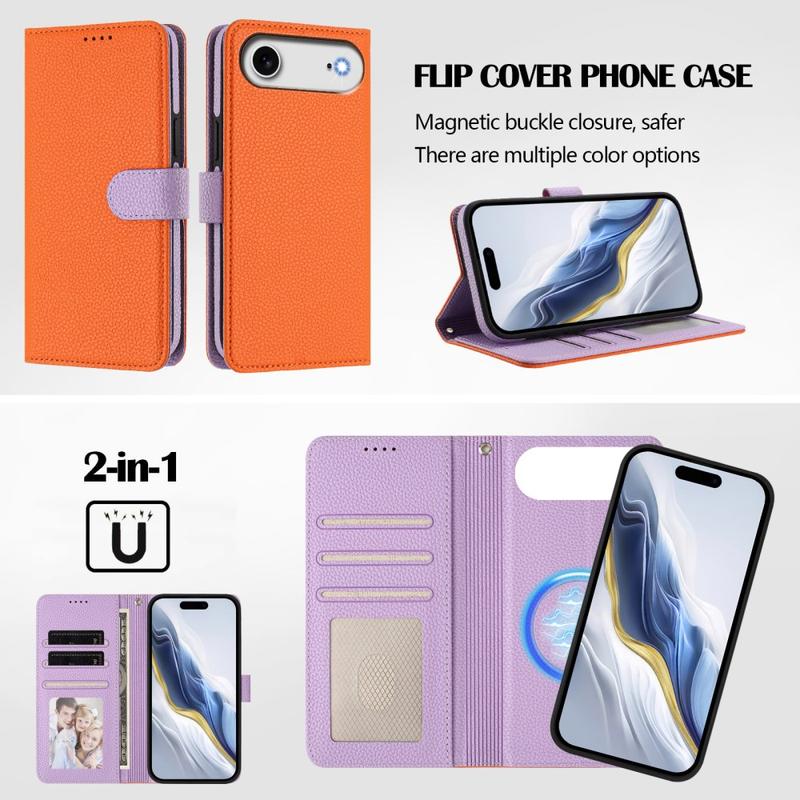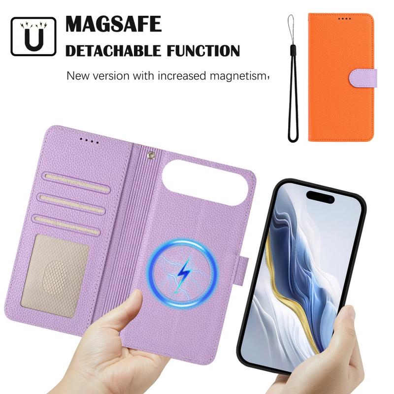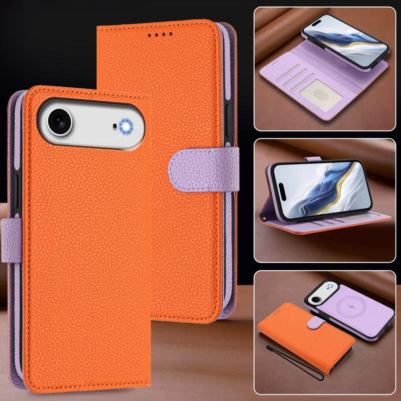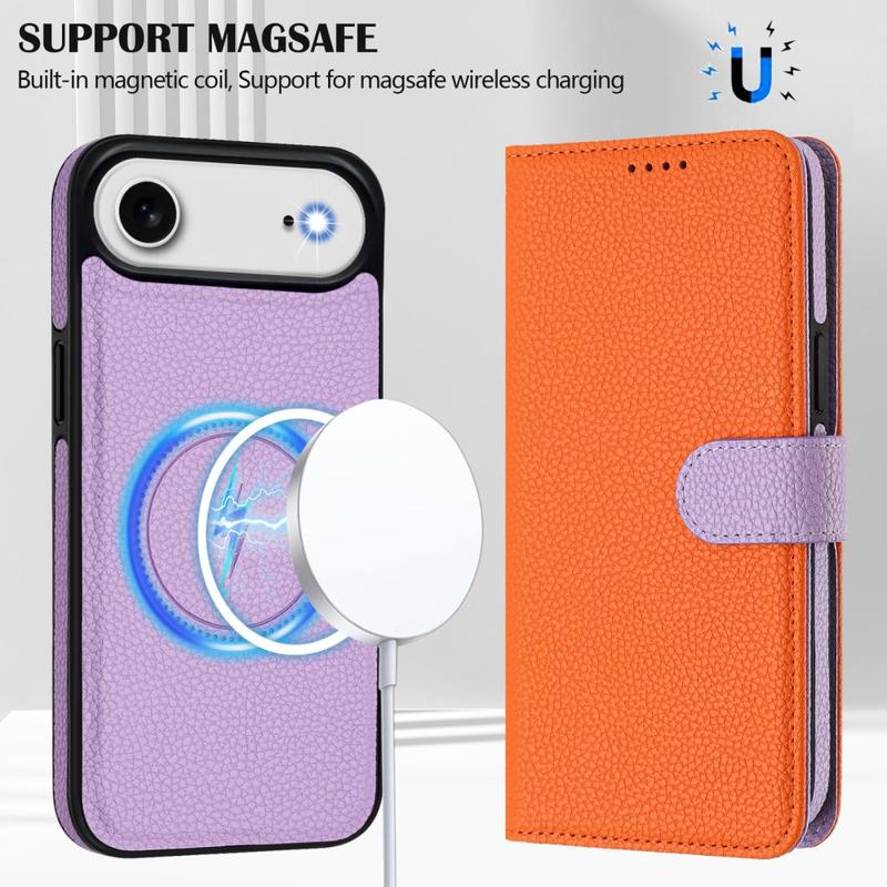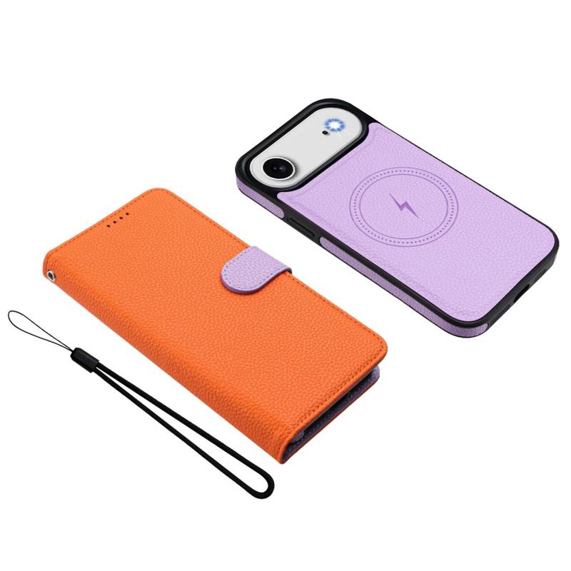 iPhone Air Abnehmbare Wallet Hülle mit MagSafe, RFID Schutz und Handschlaufe - Orange / Lila