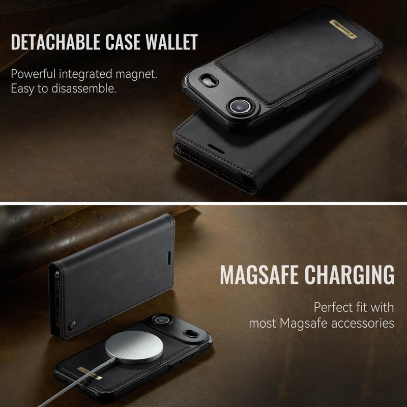 - Magnetisch abnehmbares 2-in-1-Design: Brieftasche und schlanke Hülle