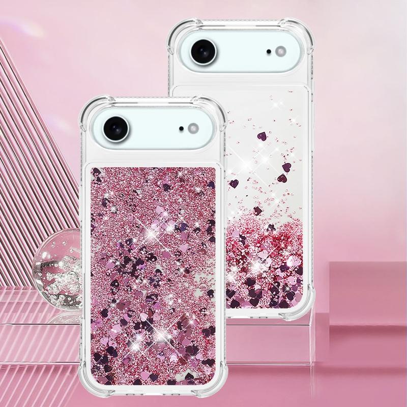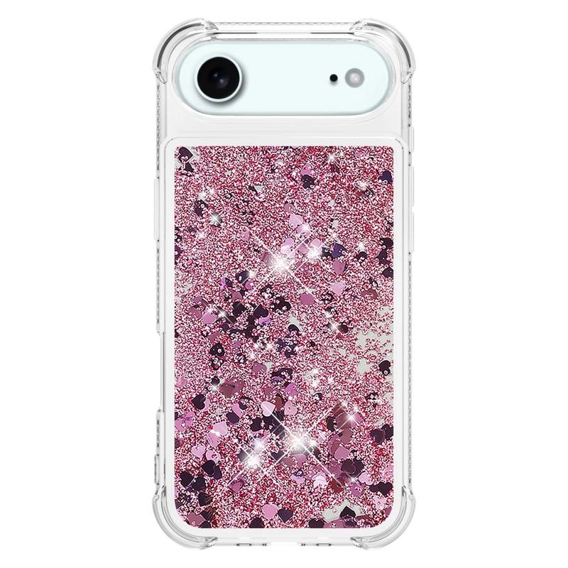 iPhone Air Glitter Quicksand TPU Hülle - Roségoldene Herzen