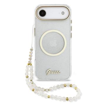 iPhone Air Guess IML Glitter Script Armband Hülle - MagSafe-kompatibel - Durchsichtig