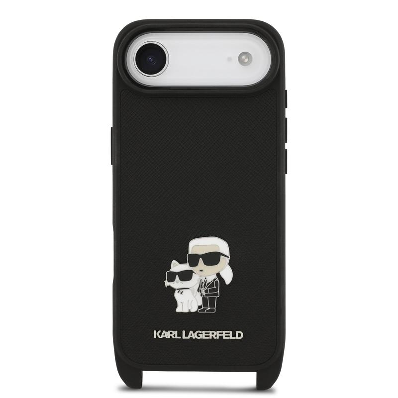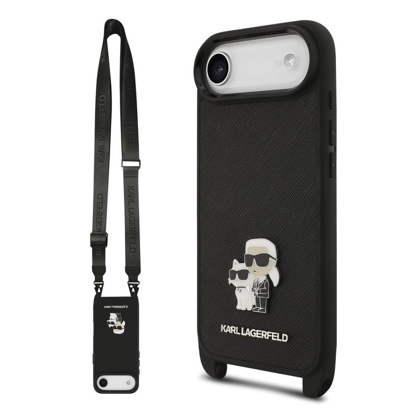 iPhone Air Karl Lagerfeld Saffiano Crossbody Metal Karl & Choupette Hülle - Schwarz