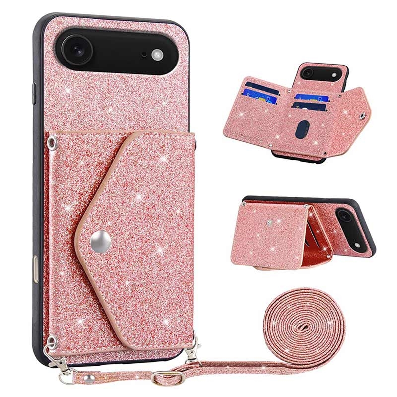 Die hochwertige Hülle aus der Stardust-Serie ist die richtige Wahl, um Ihr iPhone Air vor möglichen Schäden zu schützen. Es hat einen Kartenhalter auf der Rückseite mit einem Druckknopf, der großartig ist, um Ihre wichtigen Karten aufzubewahren und sicher aufzubewahren. Eine glänzende Glitzeroberfläche verleiht Ihrem Telefon einen Hauch von Glamour. Darüber hinaus wird die Hülle mit einem 150cm langen Schultergurt geliefert, mit dem Sie Ihr iPhone Air überall hin mitnehmen können.