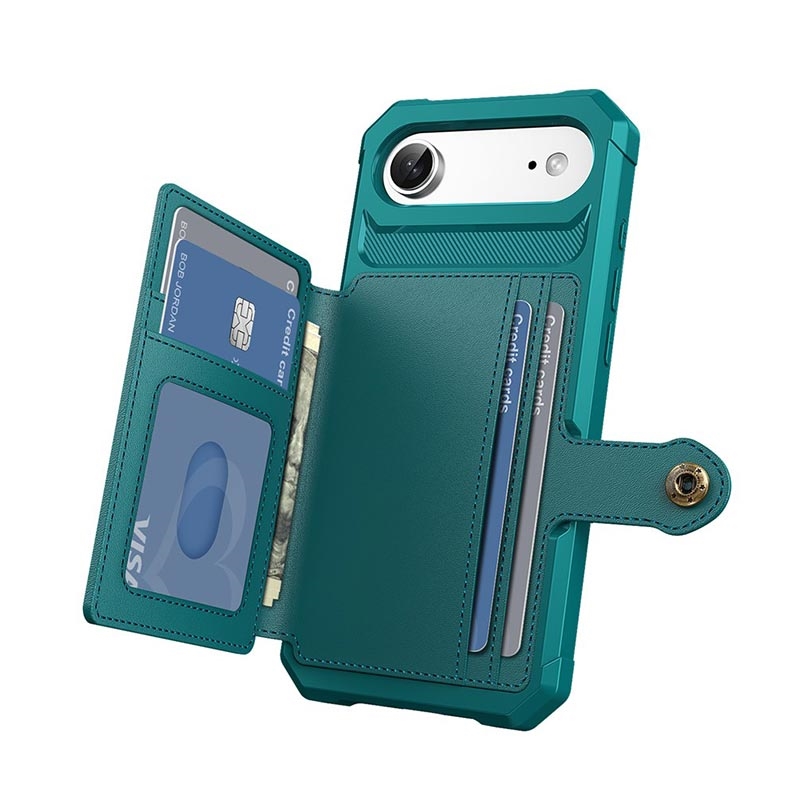 - Die Brieftaschenhülle für das iPhone Air verfügt über einen sicheren Druckknopfverschluss, ein Brieftaschendesign und mehrere Kartenfächer mit einer Geldtasche