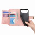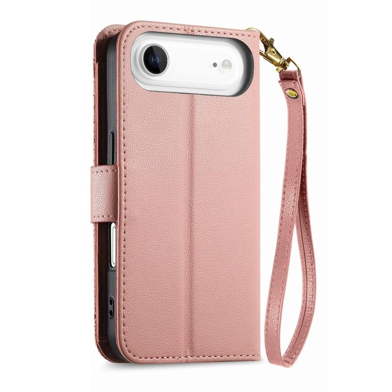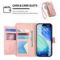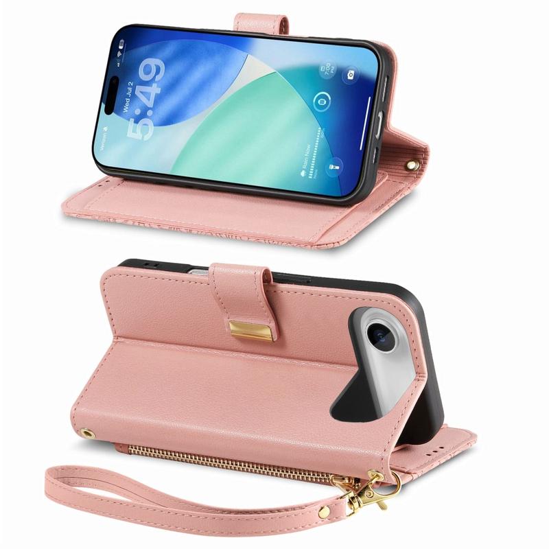 iPhone Air Wallet Hülle mit Blumen und Blattmuster mit Reißverschlusstasche & Handgelenkband - Rosa