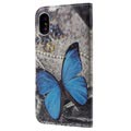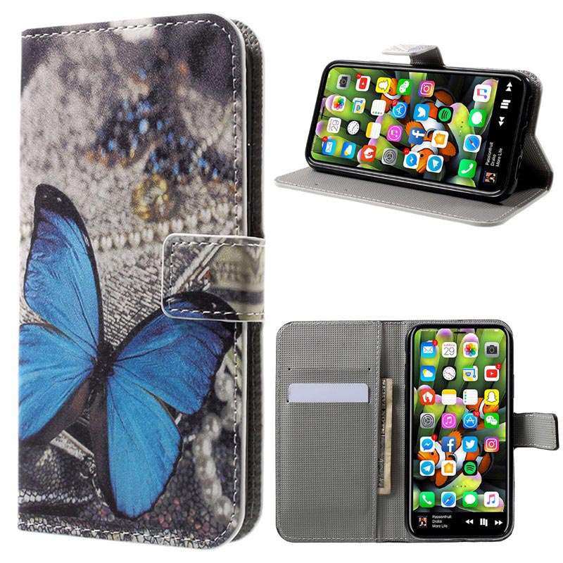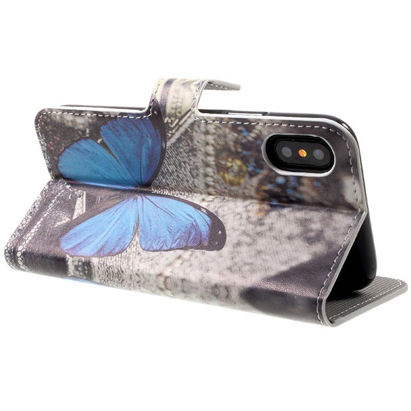iPhone X / iPhone XS Style Serie Schutzhülle mit Geldbörse - Blau Schmetterling