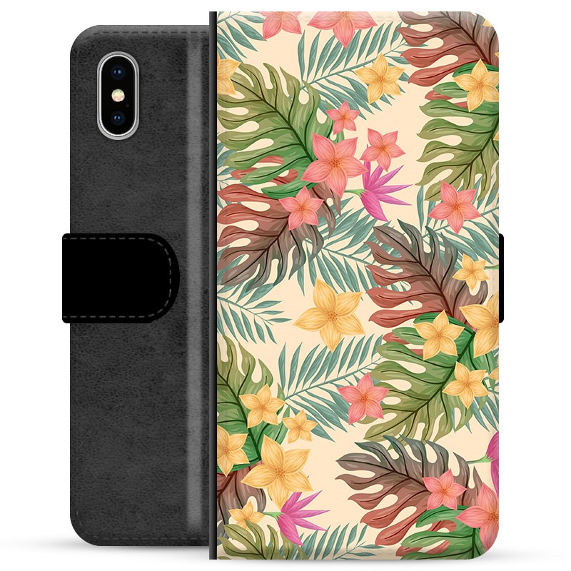 iPhone X / iPhone XS Premium Schutzhülle mit Geldbörse - Pinke Blumen