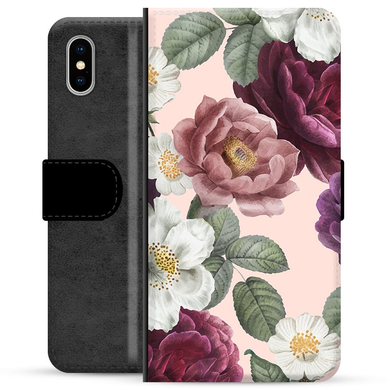 iPhone X / iPhone XS Premium Schutzhülle mit Geldbörse - Romantische Blumen
