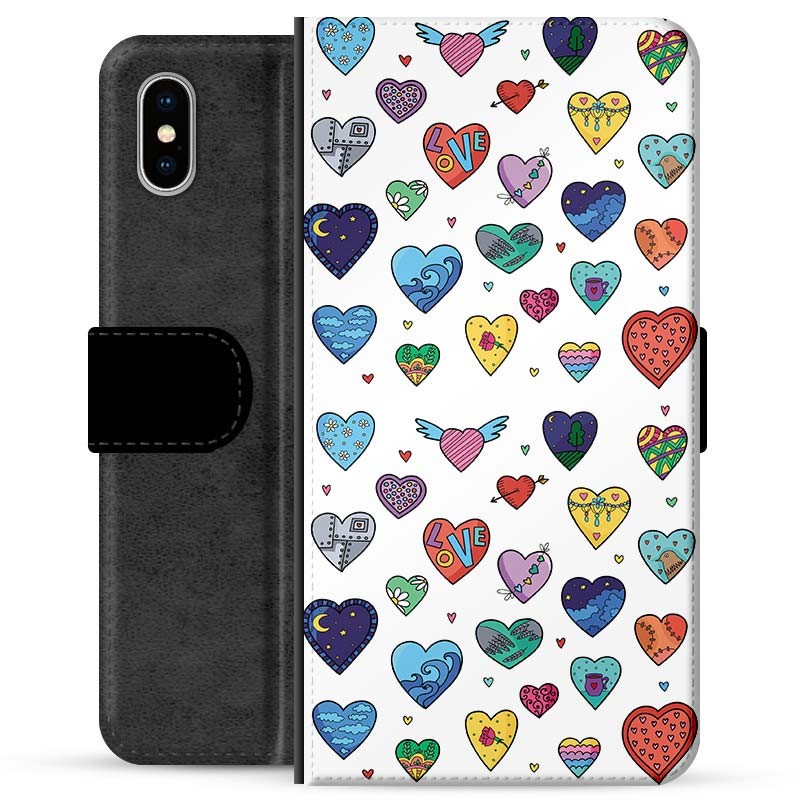 iPhone X / iPhone XS Premium Schutzhülle mit Geldbörse - Herzen