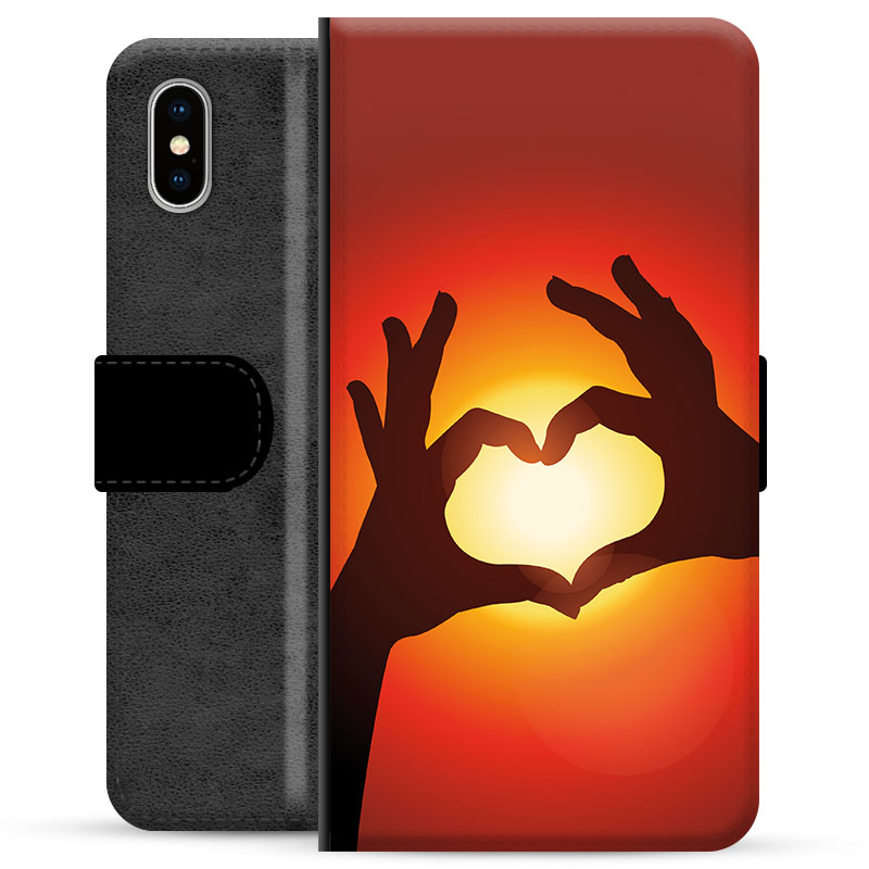 iPhone X / iPhone XS Premium Schutzhülle mit Geldbörse - Herz-Silhouette