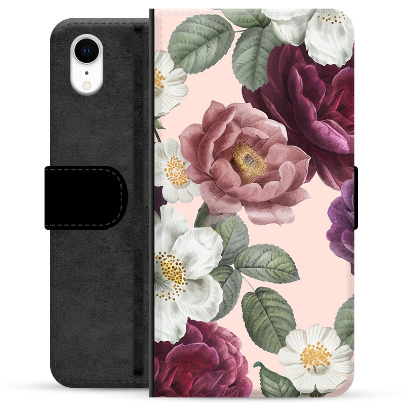 iPhone XR Premium Schutzhülle mit Geldbörse - Romantische Blumen
