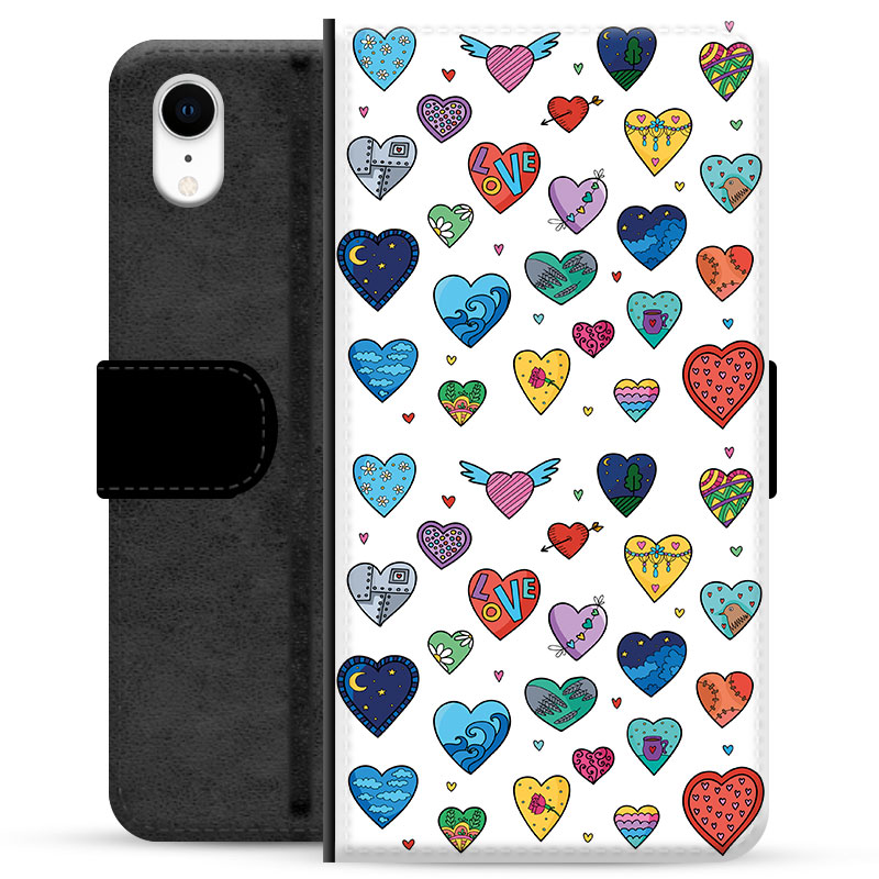 iPhone XR Premium Schutzhülle mit Geldbörse - Herzen
