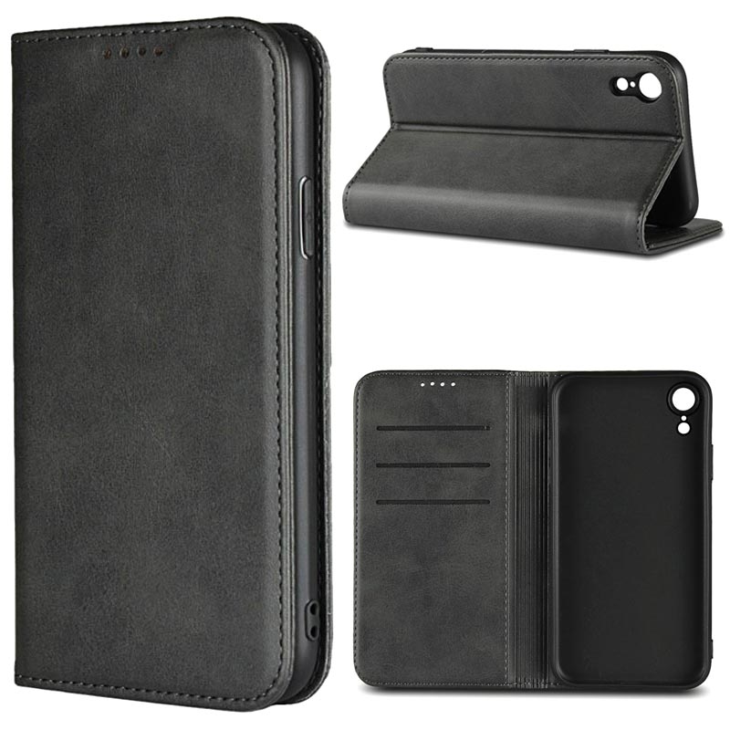 iPhone XR Retro Wallet Schutzhülle mit Magnetverschluss - Schwarz