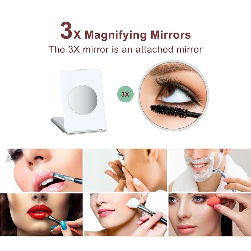 • J17 Faltbarer tragbarer LED-Makeup-Spiegel mit 3facher Vergrößerung - perfekt für Reisen und Zuhause