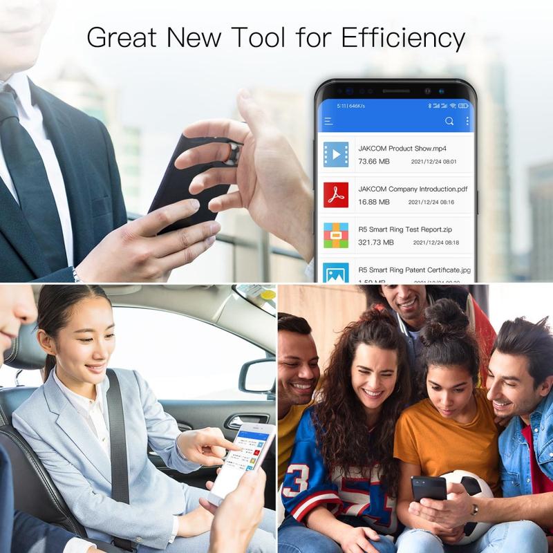 JAKCOM R5 ist ein multifunktionaler Smart Ring, der 6 Proximity-Karten gleichzeitig ersetzen kann, Social Sharing, Unterstützung von Apple Shortcuts, Wireless Flash Disk, Virtual Call und SOS, Interaktion mit Mobiltelefonen, um spezielle Funktionen von "Social Sharing", "Wireless USB Flash Disk", "Smart Home Trigger" und so weiter zu realisieren