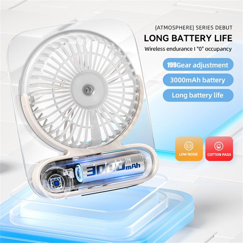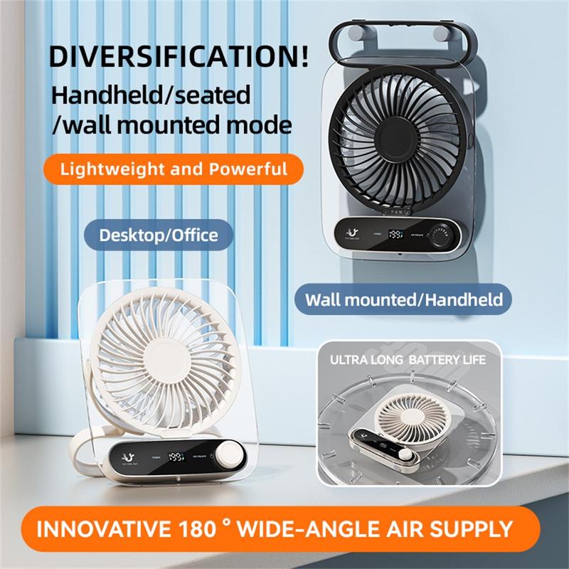 JF136 Weitwinkliger tragbarer Tisch- und Hängeventilator / 199-Gang 3000mAh USB-C wiederaufladbare Kühlbox