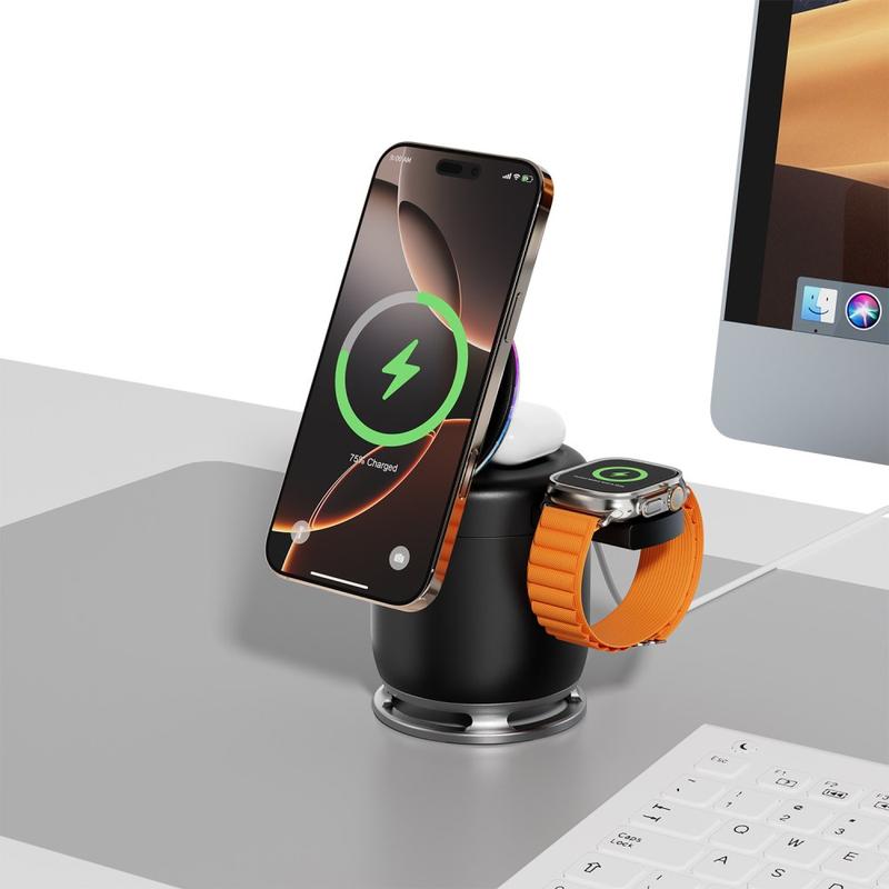 - 3-in-1-Ladung: 15W Telefon + 2,5 W Uhr + 5 W Ohrhörer gleichzeitig
