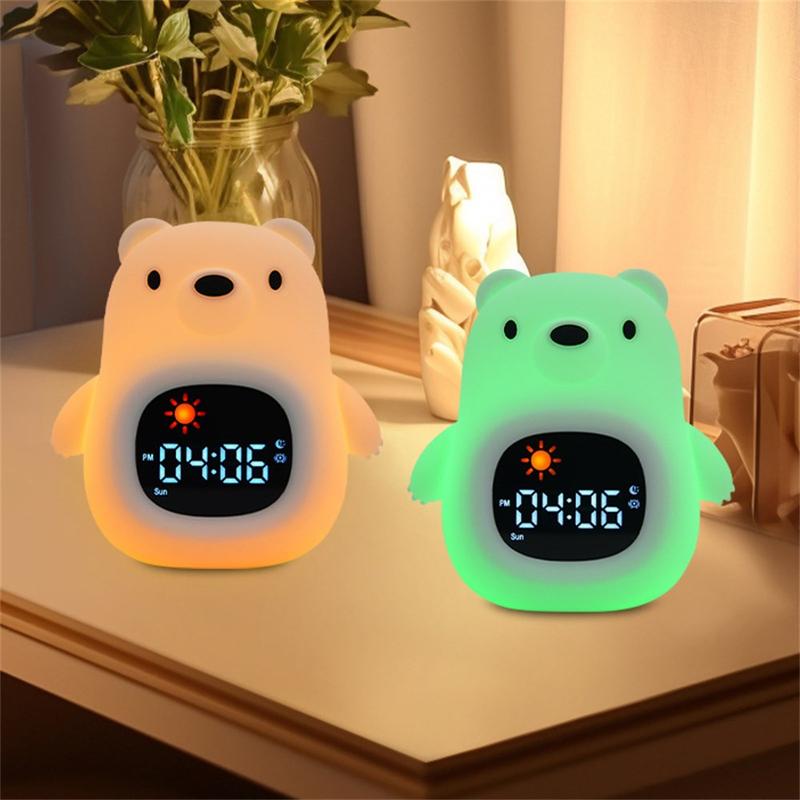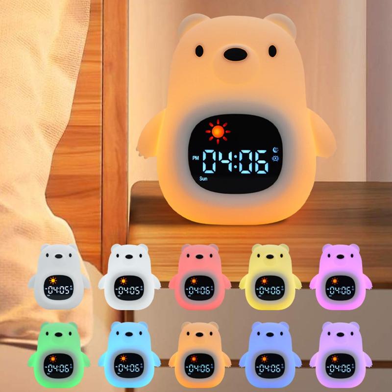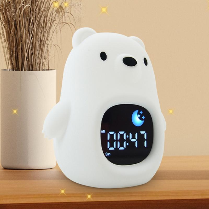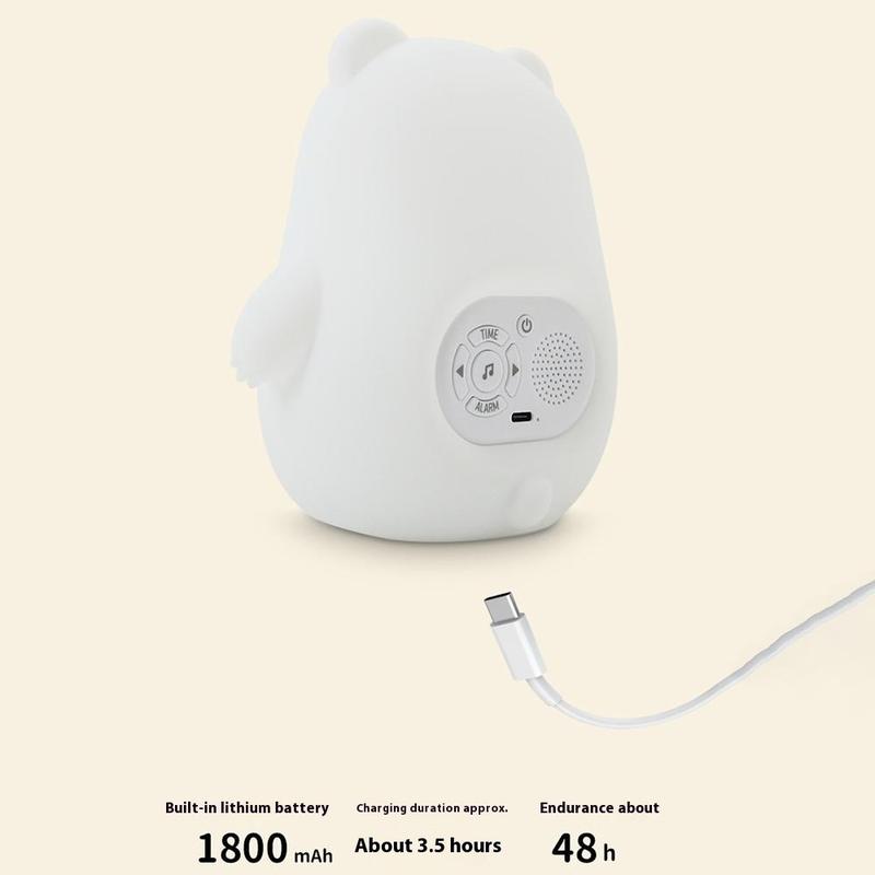 JL-821 Weißes Rauschen Wecker - Schlaf Nachttischlampe mit Tap Control Nachtlicht - Weißer Bär