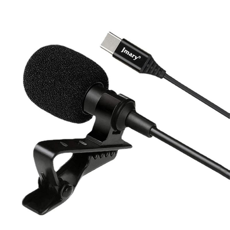 Jmary MC-R2 USB-C Lavalier-Kabelmikrofon 2 m / omnidirektionales Kondensator-Interviewmikrofon mit Clip und Windschutzschwamm