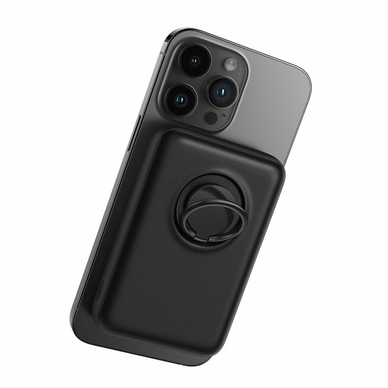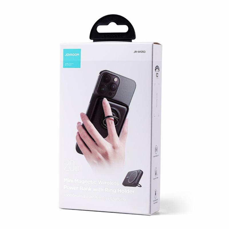 JOYROOM JR-W050 20W PD3.0 Schnelllade-Powerbank 10000mAh Magnetisches drahtloses Ladegerät Externes Akkupack mit Ringhalterung Kickstand - Schwarz