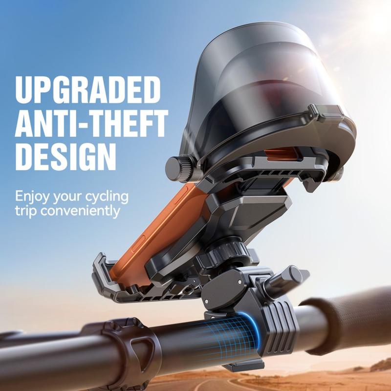 Dank des Einhand-Schnellverschlusses können Sie Ihr Smartphone vor der Fahrt einfach befestigen oder abnehmen. Ein verstärkter rutschfester Verriegelungsmechanismus hält das Gerät auch auf unebenem Gelände sicher an seinem Platz, während die stoßdämpfende Konstruktion Vibrationen von der Straße reduziert. Durch die vollständige 360°-Drehbarkeit können Sie den Blickwinkel an verschiedene Fahrpositionen anpassen.