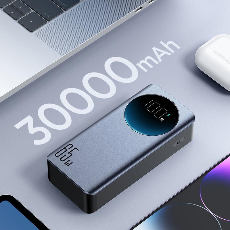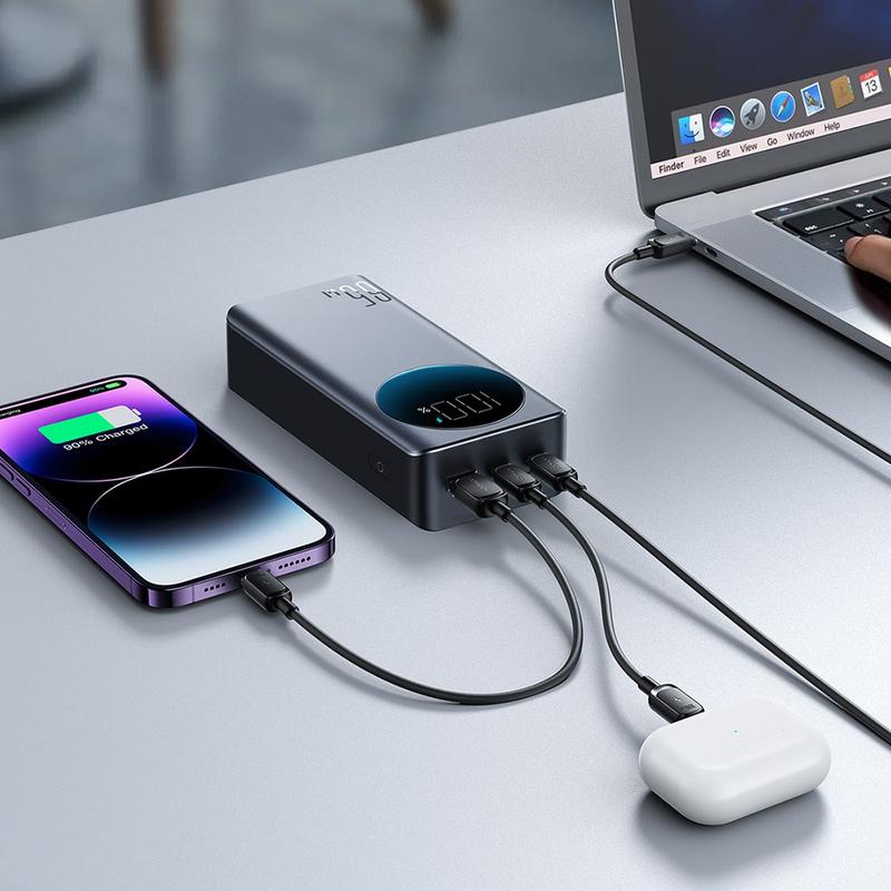 Versorgen Sie Smartphones, Tablets und sogar Laptops unterwegs mit Strom - mit der Powerbank Joyroom JRPBF05 mit 30.000 mAh. Sie ist für schnelles Laden ausgelegt, liefert über USB-C bis zu 65W Power Delivery und unterstützt bidirektionales Schnellladen, sodass auch die Powerbank selbst schnell wieder aufgeladen werden kann. Ein großes Digitaldisplay zeigt den Akkustand und den Ladestatus auf einen Blick an, während die intelligente Temperaturregelung für effizientes Laden mit weniger Wärmeentwicklung sorgt. Mit mehreren Anschlüssen ist sie ideal für Reisen, Pendler und Arbeitsumgebungen, in denen Sie eine zuverlässige Notstromversorgung benötigen.