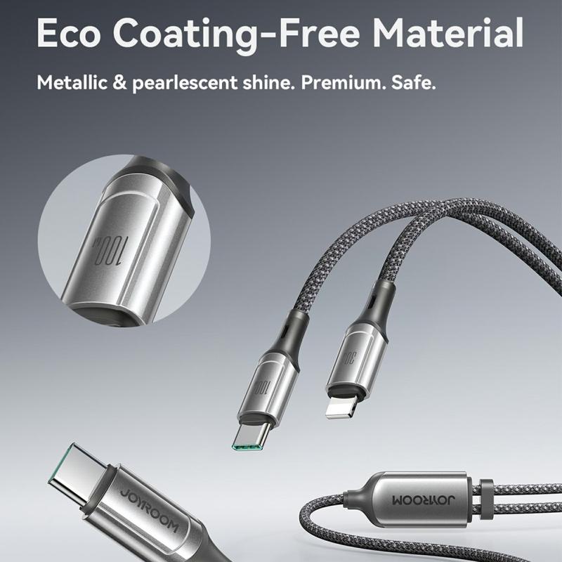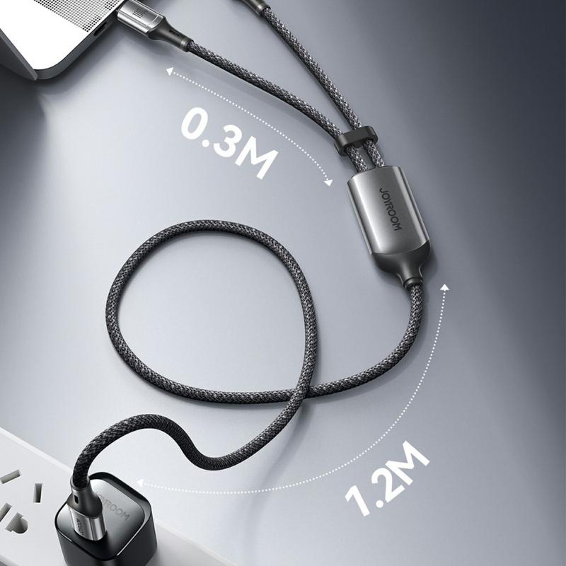 • Joyroom S-A57 100W 2-in-1-Ladekabel - USB-C zu USB-C + Lightning Dual Connector, 480 Mbps Datensynchronisation, Nylon geflochten