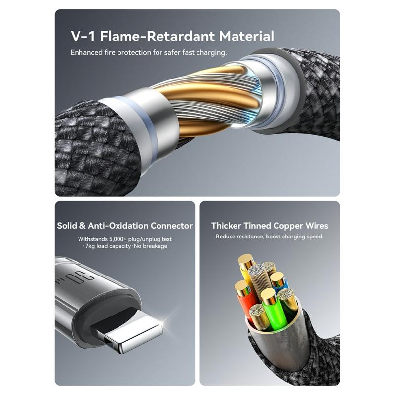 - Duales Anschlussdesign: USB-C auf USB-C + Lightning für breitere Gerätekompatibilität