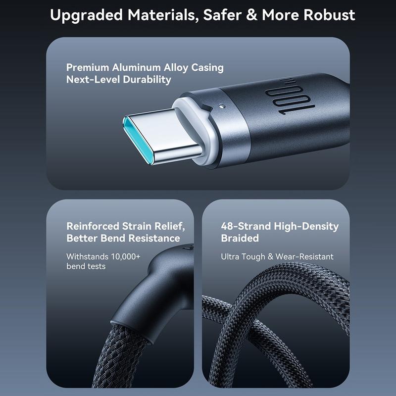 Das Kabel besteht aus einem Gehäuse aus Aluminiumlegierung und einem strapazierfähigen, geflochtenen Nylon-Außenmantel und ist für den regelmäßigen täglichen Gebrauch ausgelegt. Es bietet sowohl Schnellladen als auch Datenübertragung in einer zuverlässigen Lösung und verfügt über eine robuste Konstruktion, die Biegungen, Zugbelastungen und den täglichen Verschleiß standhält.