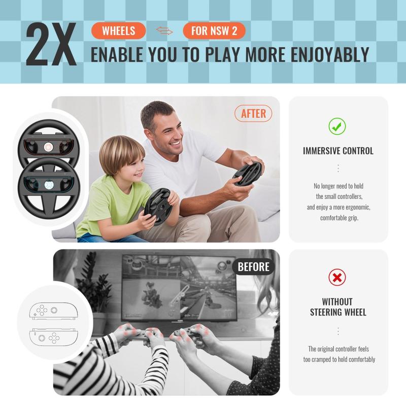 - Das Paket enthält sowohl das linke als auch das rechte Rad für Split-Screen- oder Head-to-Head-Spiele