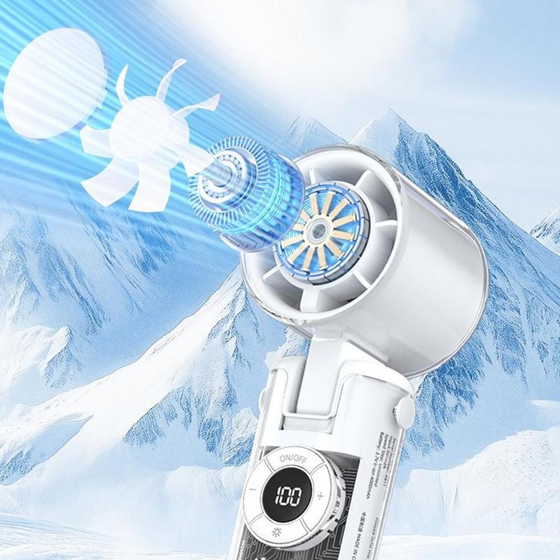 • K-811 Transparenter Mecha Handventilator - 100-stufiger faltbarer tragbarer Kühler mit Halbleiter-Eiskompressor und LED-Taschenlampe, wiederaufladbar