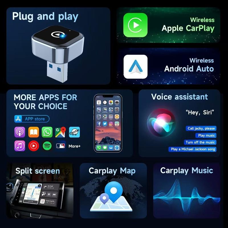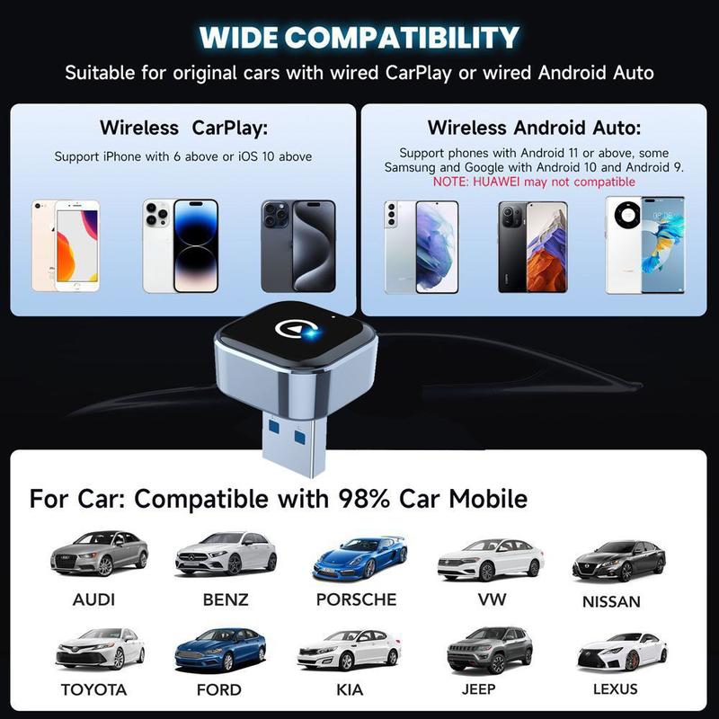 - Unterstützt sowohl drahtloses CarPlay als auch drahtloses Android Auto