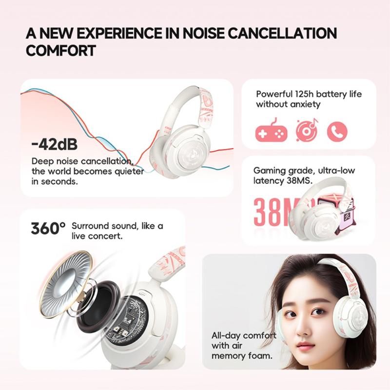 Kabellose Gaming-Kopfhörer mit ANC und Bluetooth 5.4 GT1