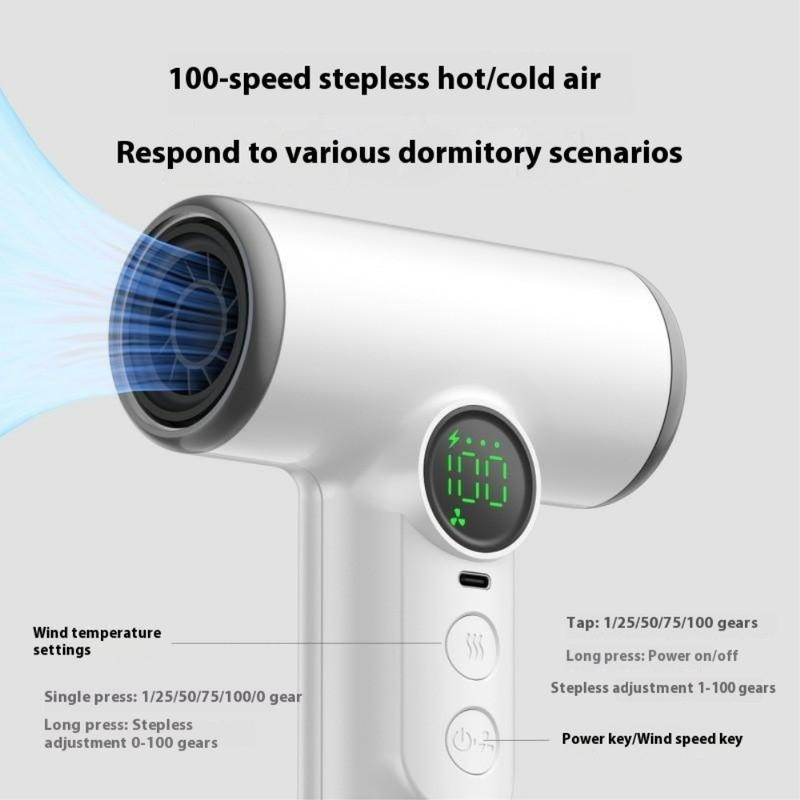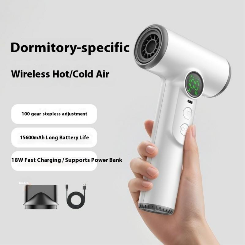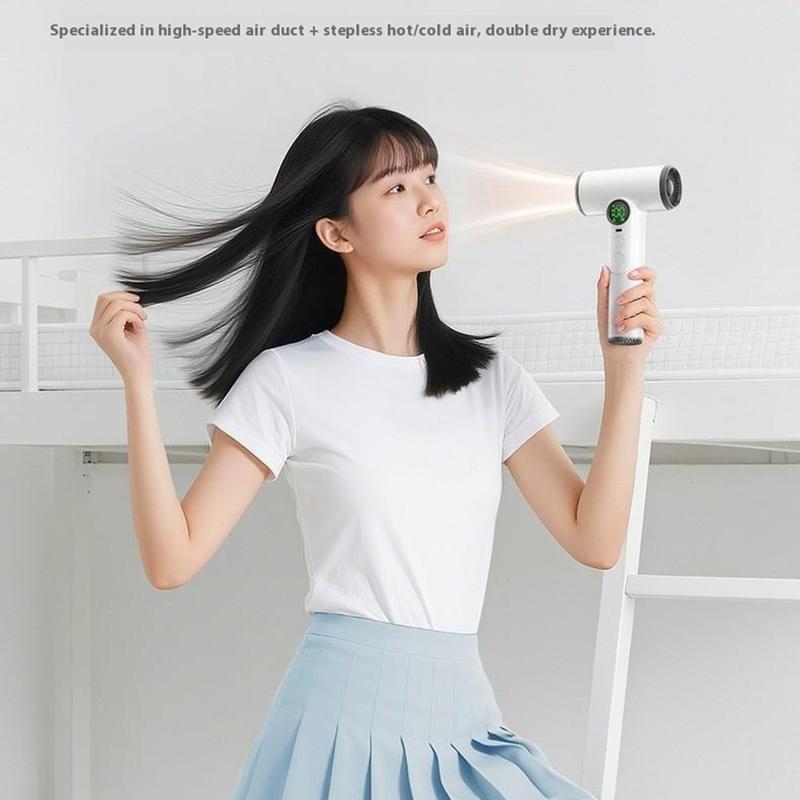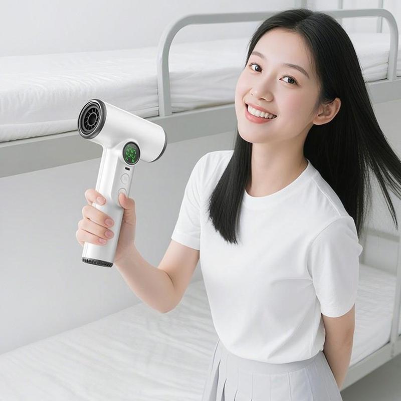 Erleben Sie professionelles Styling an jedem Ort mit dem kabellosen Haartrockner, einer leistungsstarken und tragbaren kabellosen Lösung für Reisen, das Leben im Studentenwohnheim und die Pflege zwischendurch. Ausgestattet mit einem Hochgeschwindigkeits-Digitalmotor mit 30000 Umdrehungen pro Minute, liefert er einen starken, gleichmäßigen Luftstrom und arbeitet dabei leise und effizient. Mit der fortschrittlichen 100-stufigen stufenlosen Geschwindigkeitsregelung können Sie den Luftstrom und die Temperatur präzise einstellen und so ganz einfach zwischen kühler und warmer Luft für jeden Haartyp und -stil wechseln. Der 15600-mAh-Akku sorgt für eine lange Laufzeit und kann sogar als Powerbank zum Aufladen anderer Geräte verwendet werden. Mit intelligenter Temperaturregelung, doppeltem Überhitzungsschutz und einer intelligenten LED-Anzeige sorgt dieser Haartrockner für sichere Leistung und mühelosen Komfort, wo immer Sie sind.