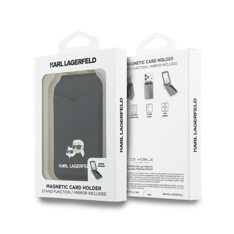 • Karl Lagerfeld Karl & Choupette Magnetischer Kartenhalter mit Ständer und Spiegel - MagSafe-Geldbörse mit integriertem Spiegel, Kartenfach und Ständer