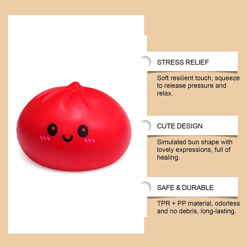Rotes, gedämpftes Brötchen als Stressball - Niedliches TPR-Knet- und Drück-Spielzeug für Zuhause, das Büro und das Arbeitszimmer