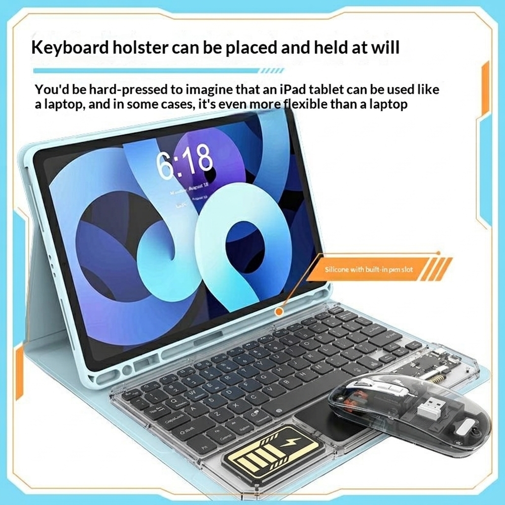 Werten Sie Ihren Schreibtisch oder Ihr Tablet-Setup mit dem transparenten Bluetooth-Tastatur- und Maus-Set KB333 auf. Diese kabellose Kombination wurde für Arbeit, Studium und den täglichen Gebrauch entwickelt und vereint eine kompakte Tastatur, ein integriertes Touchpad und eine passende Maus in einem stilvollen Set. Das transparente Design mit RGB-Hintergrundbeleuchtung verleiht ihm einen modernen Look, während die 3-Kanal-Konnektivität das Umschalten zwischen mehreren Geräten erleichtert.