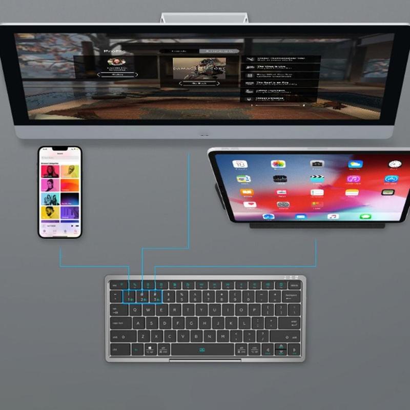 - Drahtlose Bluetooth-kompatible Tastatur mit Unterstützung für bis zu drei verbundene Geräte