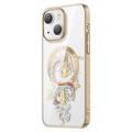 PQY Mecha Series Hybrid PET+TPU Phone Case for iPhone 14 Plus, Electroplating IML Luminous Shockproof Protective Cover, Compatible with MagSafe - Red