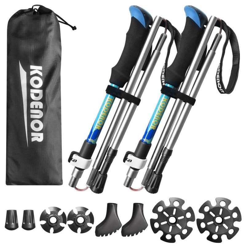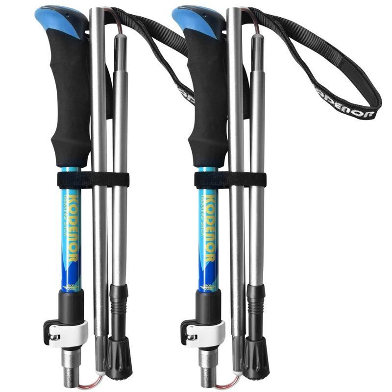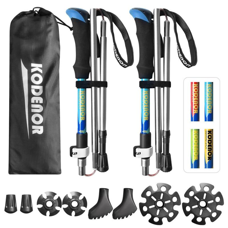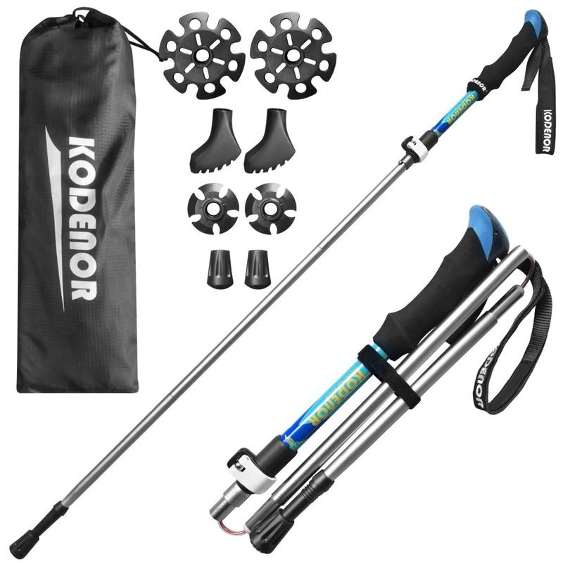 • KODENOR 2 PCS zusammenklappbar Trekking Pole Set für Trekking Camping Reisen Klettern kurzen Stil - blau