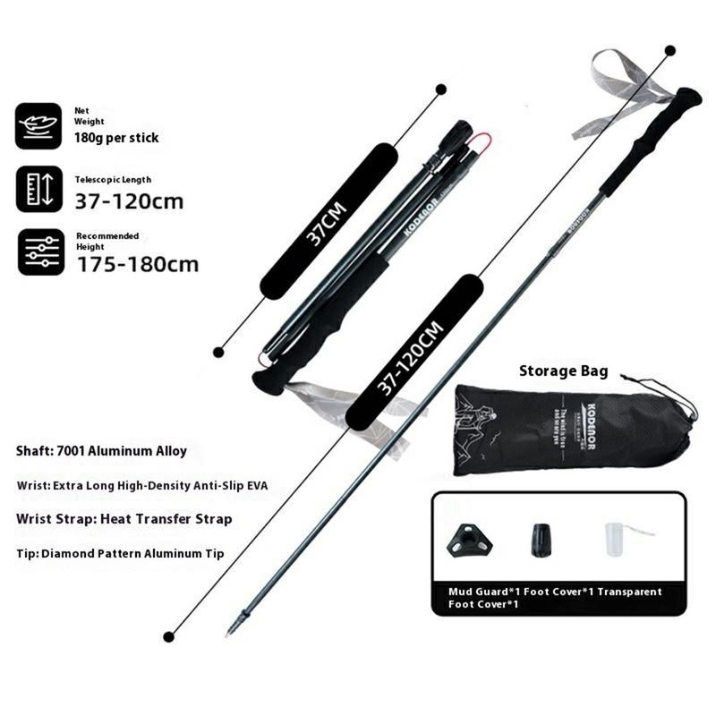 - Leichte Aluminiumlegierung - Wiegt nur 180 g für ermüdungsfreies Tragen auf langen Wanderungen.