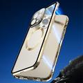Kompatibel mit MagSafe Case für iPhone 15 Pro Magnetischer Metallrahmen + doppelseitige Telefonabdeckung aus gehärtetem Glas mit Schnallenverschluss - Gold