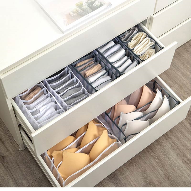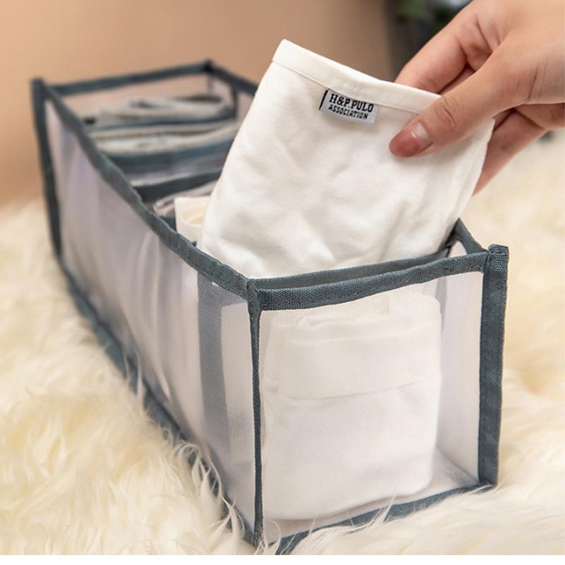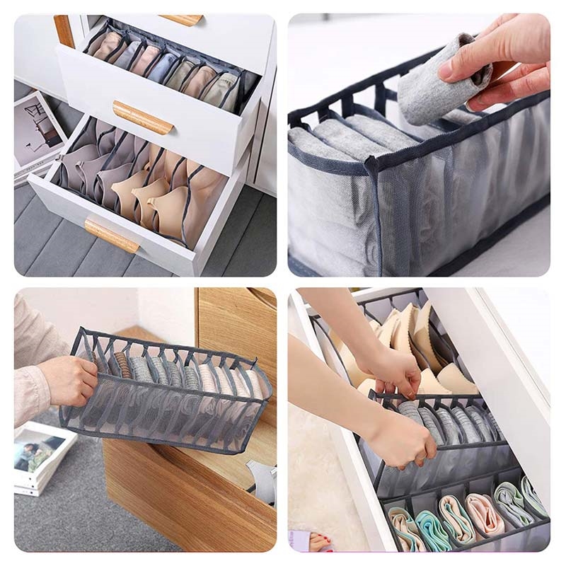 • Socken & Unterwäsche Schublade Organizer - 7-Grid zusammenklappbar Schrank Divider Storage Box, Nylon Mesh