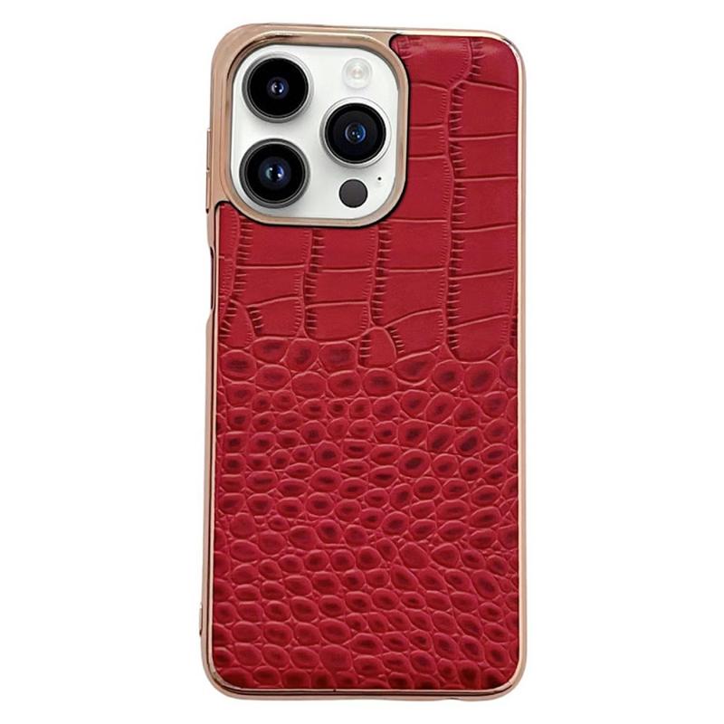For iPhone 14 Pro Crocodile Texture Nano Electroplating Genuine Cowhide Leather Coated TPU+PC Case
