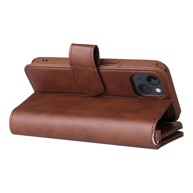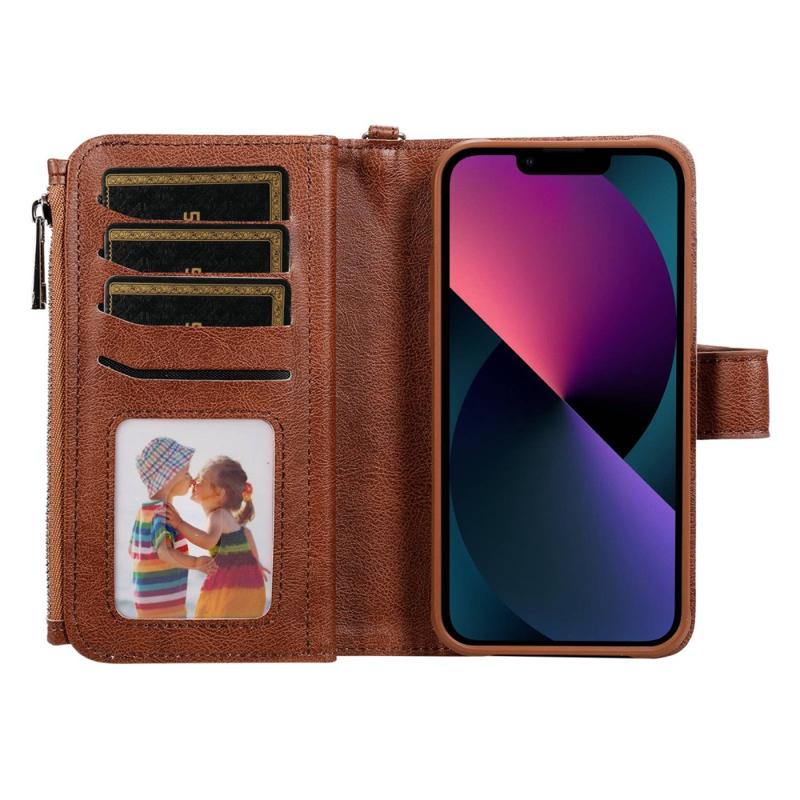 KT Multi-functional Series-4 Zipper Pocket Phone Case for iPhone 14, Detachable 2-in-1 PU Leather Wallet Stand Cover