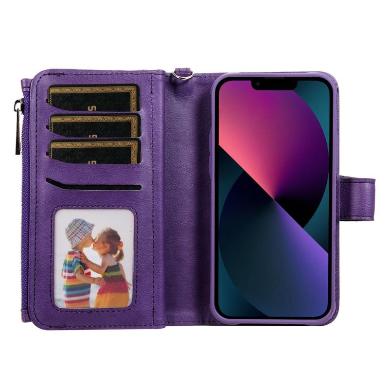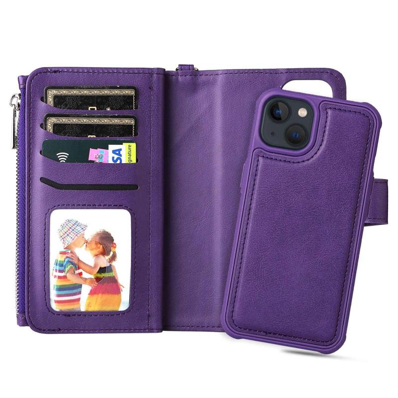 KT Multi-functional Series-4 Zipper Pocket Phone Case for iPhone 14, Detachable 2-in-1 PU Leather Wallet Stand Cover