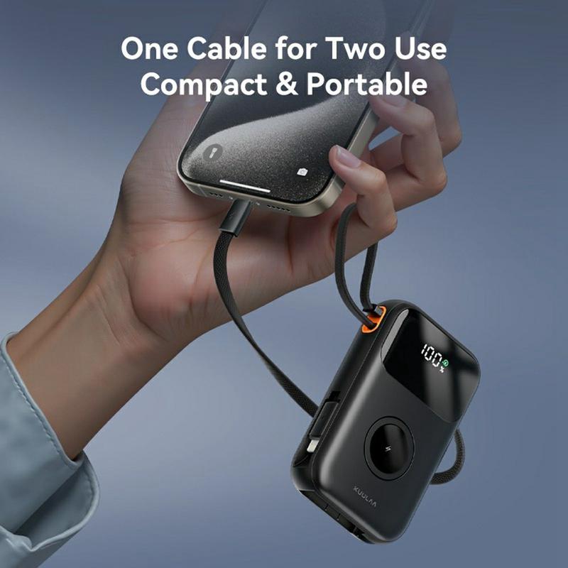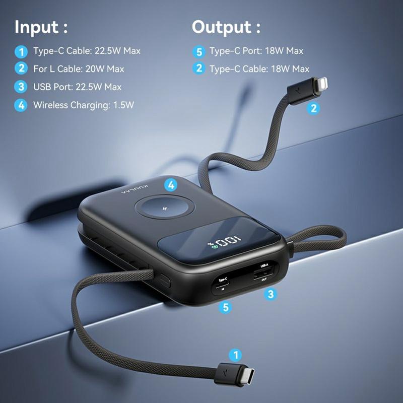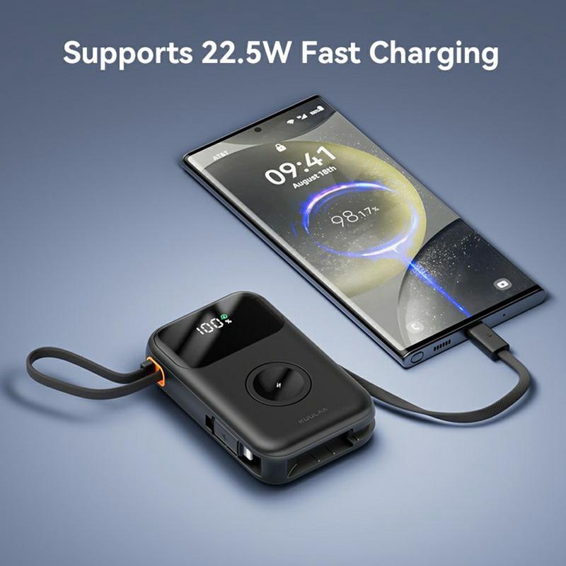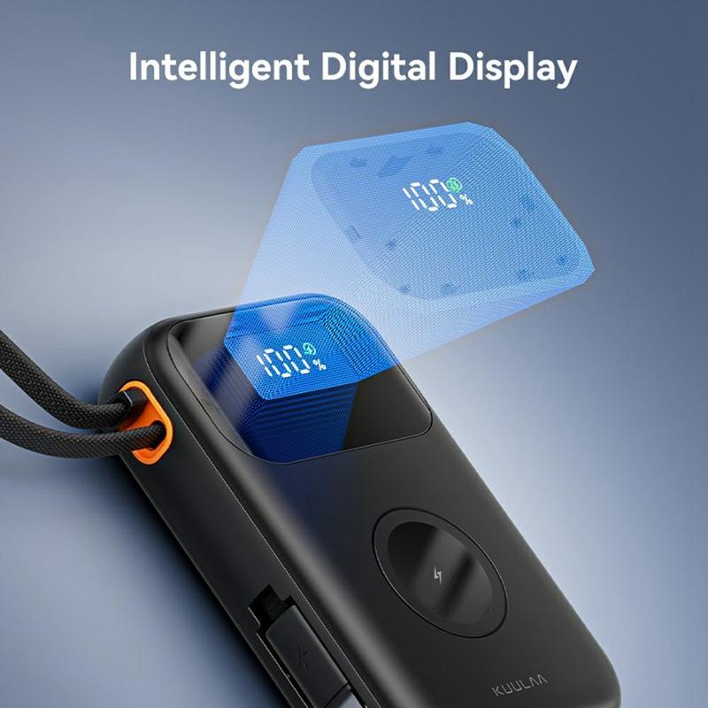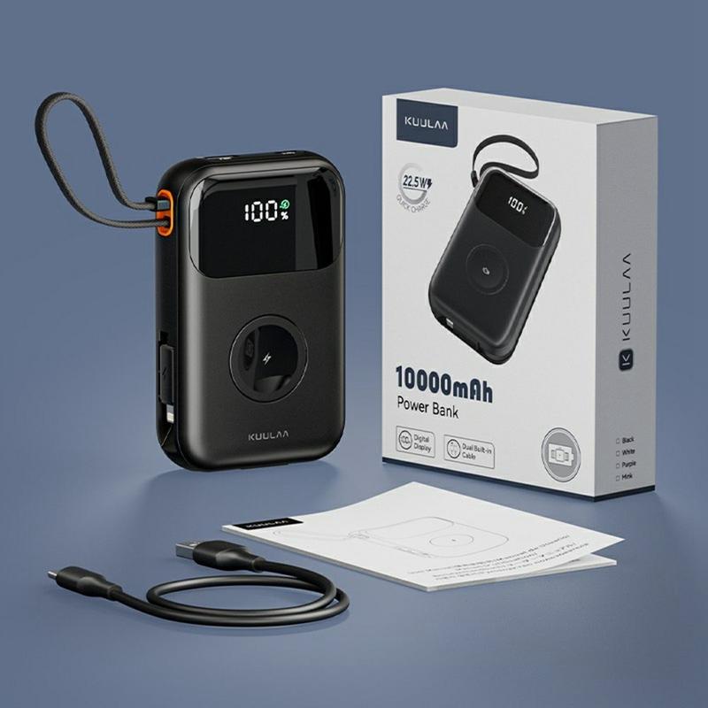 Halten Sie Ihre Geräte unterwegs mit der Kuulaa KL-YD80 Digital Display Power Bank mit Strom versorgt. Dieses tragbare Ladegerät mit 10.000 mAh verfügt über zwei integrierte Kabel, 22,5 W Schnellladeunterstützung und ein intelligentes digitales Display, das sicherstellt, dass Ihre Geräte effizient und bequem aufgeladen bleiben.