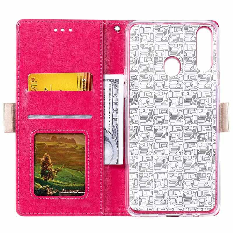 Diese unglaublich stilvolle Brieftasche mit Spitzenmuster schützt Ihr Samsung Galaxy A20s vor Beschädigungen, und die vordere Reißverschlusstasche bietet Platz für Papiergeld und Münzen.