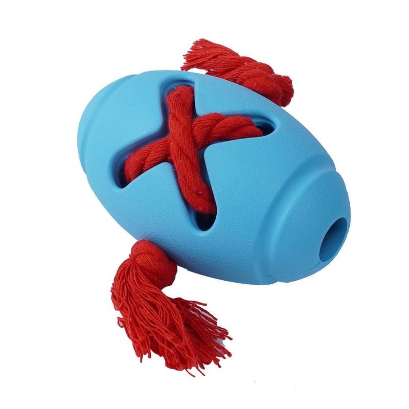 - Rugby-Ball-Design: Die einzigartige Form sorgt für einen unvorhersehbaren Aufprall, so dass Ihr Hund beschäftigt und unterhalten wird.